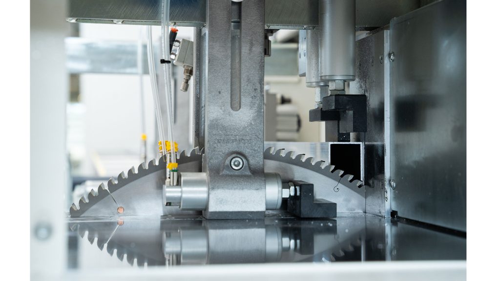Fully automated high speed circular saw for batch cutting of non-ferrous solids or sections. 500mm carbide tipped blade for fast and accurate sawing of aluminium sections and profiles.