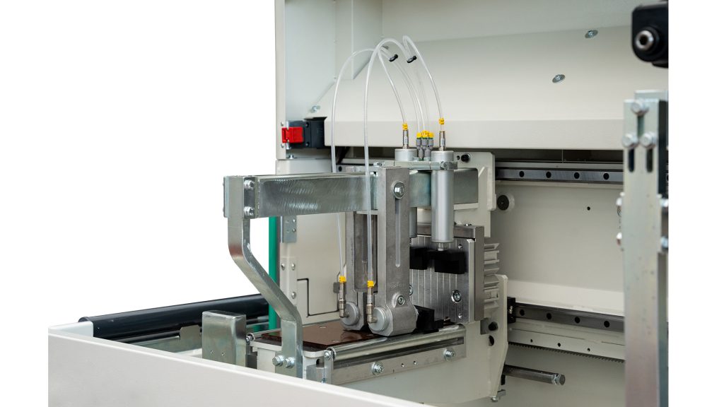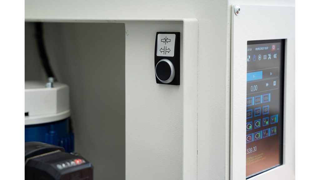 Autocut 500 Single Head Automatic Sawing Machine with Automatic feeding for cutting at 90 Degrees. Automatic feeding system fitted with Brushless motor driven by numerical control “touch screen”. Possibility to load and save cutting lists in CSV format with USB and ETHERNET connection.