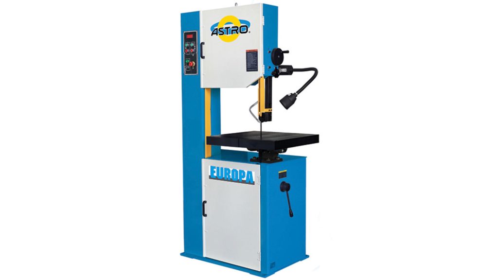 EUROPA Astro V500 Vertical Bandsaw – contour sawing machines for metals. The V500 model has a 508mm throat and can clear 330mm under the guides. Variable blade speed from 15-1500 m/min allows cutting of metals right through to plastics or wood. Industrial vertical bandsaws are very useful machines for any workshop environment.