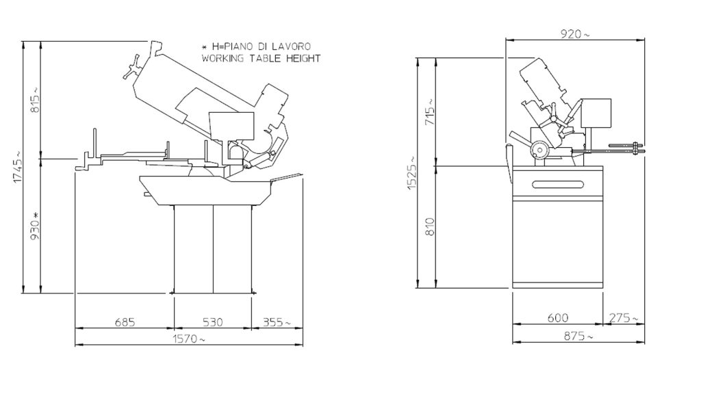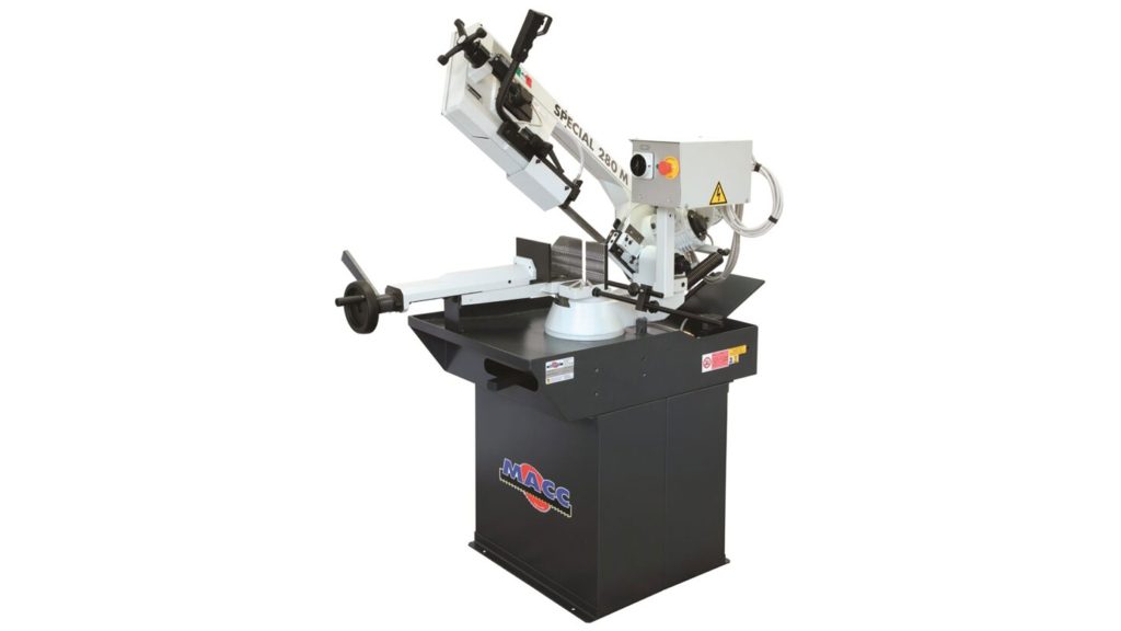 Macc Special 280M Pull down Single Mitre manual bandsaw for quick and easy cutting of metal solids or sections.