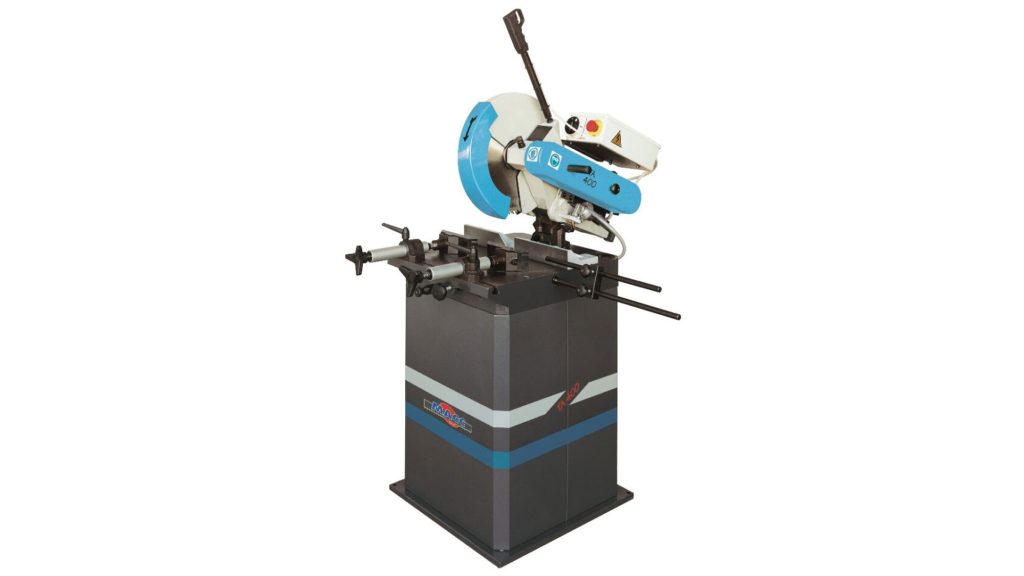 MACC TA400 Aluminium Manual Circular Saw for cutting solids or section made of aluminium or light alloys. This is an industrial non ferrous saw with full mitre capability giving the fasted cuts with the best surface finish available. This saw uses a 400mm Tungsten Carbide Tipped (TCT) blade.
