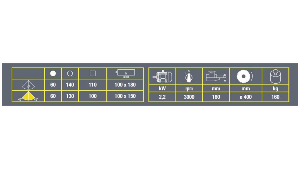 Mitre capacity 45° -0- 45°