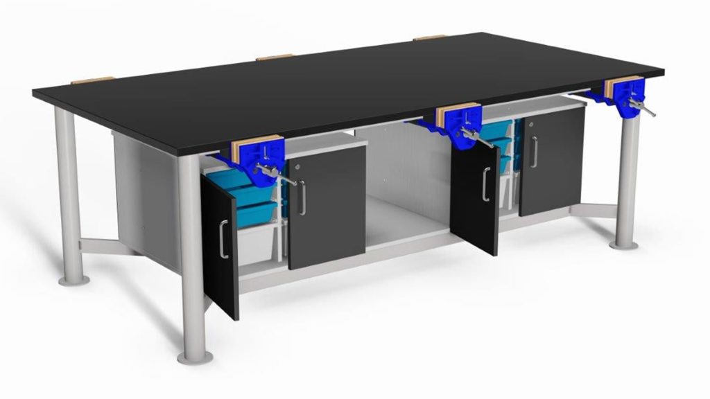 The Craftwork 1000 is the most popular choice for Design Technology & workshop environments within the education sector. Manufactured with a fully welded steel under frame, 75mm diameter leg profiles and rectangular steel box section stringers. These benches are built to last a lifetime!